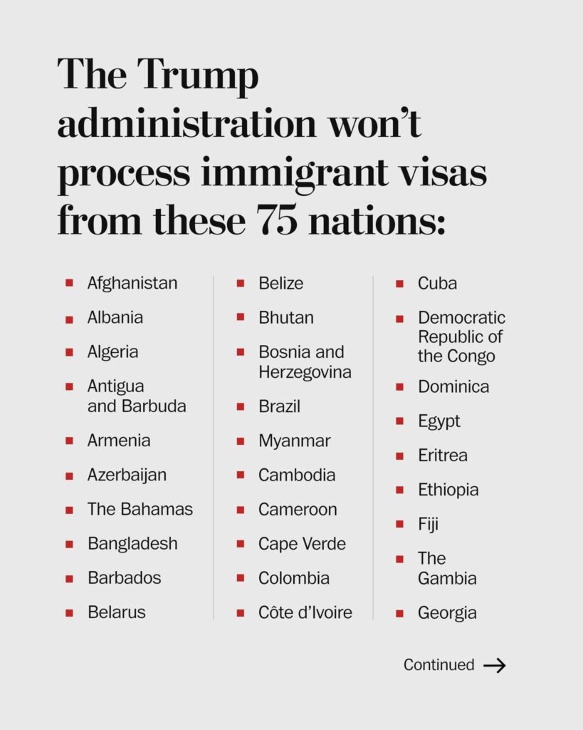 The Trump administration has announced an indefinite pause on immigrant visa processing for nationals of 75 countries, a move that further tightens legal pathways for entering the United States.